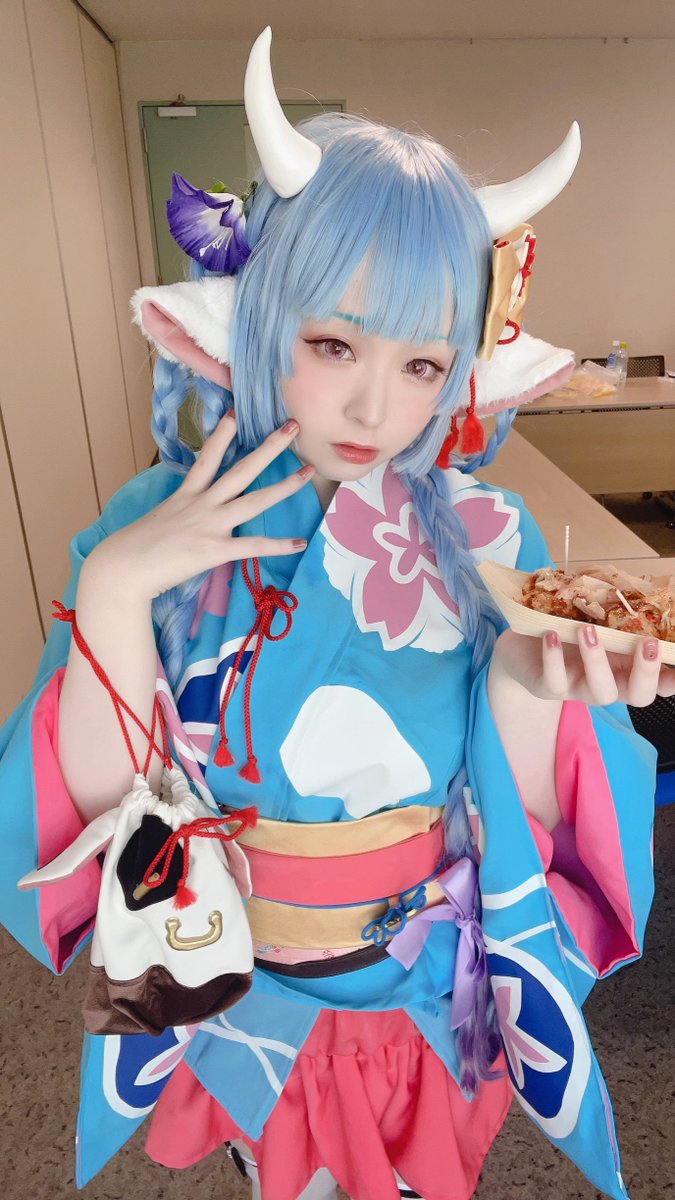 本日、吉祥寺で開催された『月窓寺 門前市 夏まつり』でコスプレトークショーのゲストとして呼んで頂きました(՞ ᴗ ̫ ᴗ՞) コス始めたきっかけからディープなお話も✨️ 境内でも特別にお写真撮る許可を頂いたのシャトラの浴衣衣装を着用しました🐮 #アニマン #アニメノマンガノムサシノ