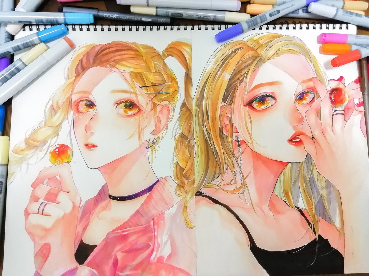 15 101 女の子の化粧は魔法!!!!!っていう題で描いたけど『化粧してる感』が上手く伝わりますように…!!! #コピック 20/01/18 17:27