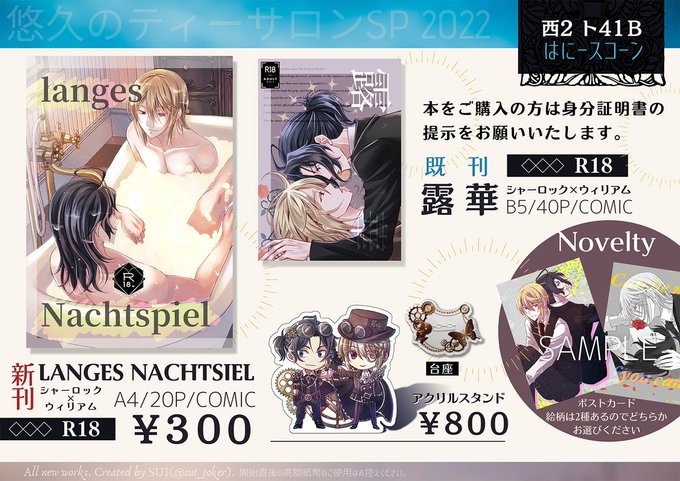 12/18の悠久のティーサロンSP20022のお品書きになります。 当日はよろしくお願いいたします🙇♀️ 通販も始まっておりますのでよろしければ😆 新刊:ec.toranoana.jp/joshi_r/ec/ite… アクスタ:sui-joker.booth.pm/items/4345008