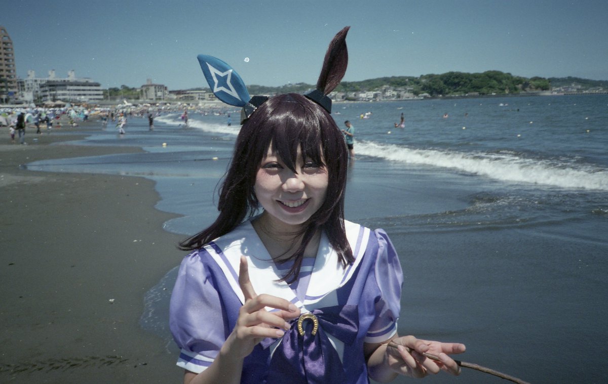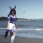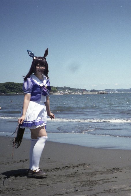 ⚠︎ cosplay ⚠︎ フィルムカメラで撮影していただいたお写真が″思い出″で良…… 拾った長い枝が気に入ってずっと握りしめてました Photo:@Omiya_track_7 #超江ノ島コスプレ祭