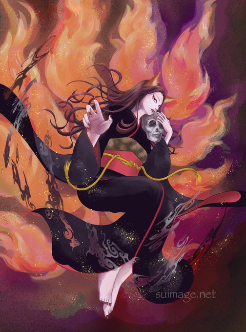 九尾の狐の化身、玉藻の前。 妖でいながら惹き寄せられてしまう、聡明さを持つ美しい女性の姿。 そんなことを想像しながら描きました。 #イラスト #絵柄が好みっていう人にフォローされたい #illustration