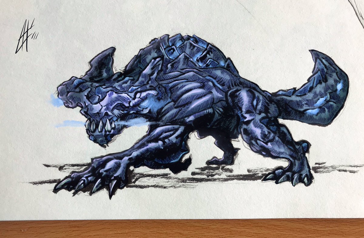 Frost Stalker ❄️ powered by a frozen core, this grumpy dude freezes his victim with his breath and then pounces on it. Or vice versa. #Inktober #Inktober2019