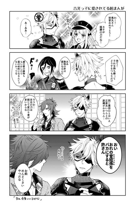 薬研藤四郎と厚藤四郎「豊臣の記憶」(1/4) とある本丸の薬研君と厚くんとの思い出。 薬研が本能寺で生き残り、豊臣で二人が一緒だったかは諸説あります。※おばあちゃんの女審神者がいます。 #エデンのこども本丸