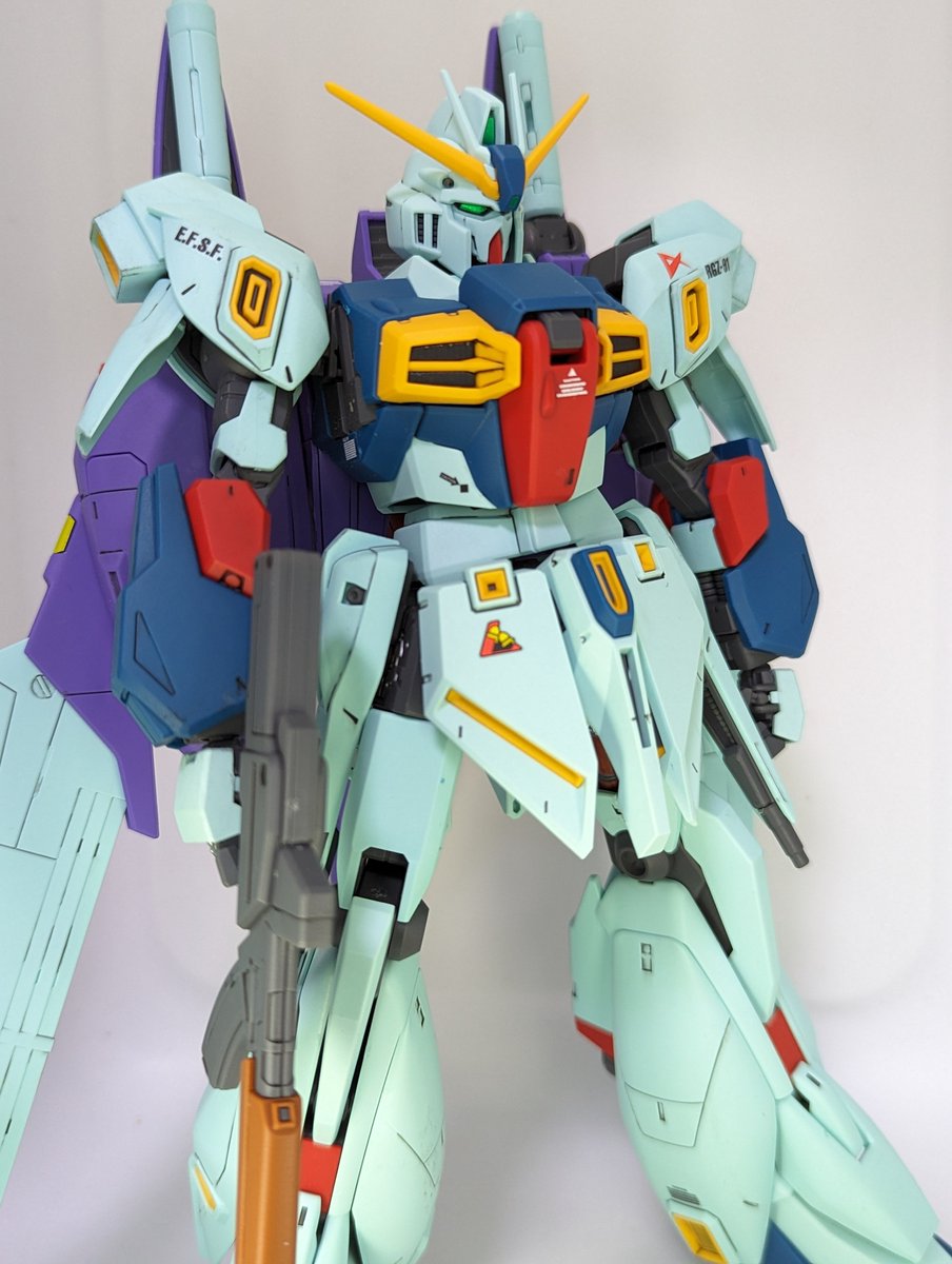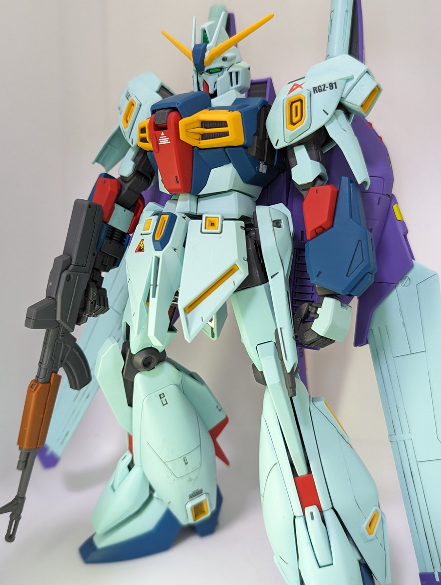 MG リ・ガズィ・カスタム いいですねー。これでもう情けないモビルスーツとは呼ばせないぞって感じ。BWSはボリュームアップしていて存在感があります。お顔もガンダムタイプになってヒロイックですね #ガンプラ #ガンプラ好きと繋がりたい #ガンプラの画像を貼るとRTされると聞いて