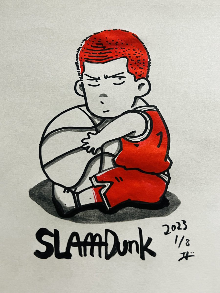 0 8 本日分の落書き、赤色の筆ペン活躍 23/01/08 18:01