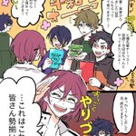 ↑鉄虎くん誕生日絵の小話漫画 流星隊と空手部の団欒 #南雲鉄虎誕生祭2022 #南雲鉄虎生誕祭2022