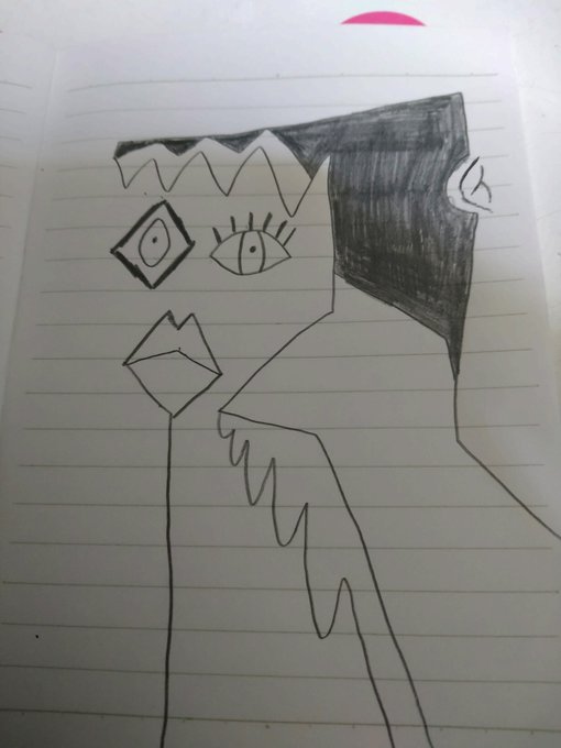 0 2 #絵画 #イラスト #手書き 『黒い涙を流している目の大きい人。』 23/03/23 19:23