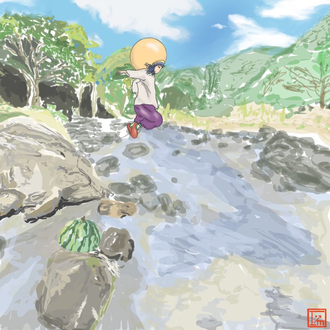 風景と以前描いたアイム✏️、、 #イラスト #田舎 #スイカ