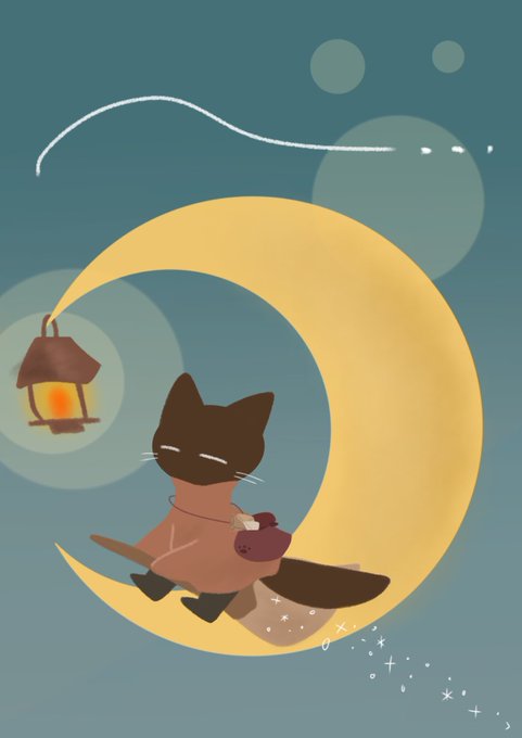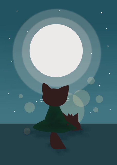 52 290 悩みも全て溶けて流して。 #猫 #イラスト #満月 #スタージョンムーン 23/08/02 21:31