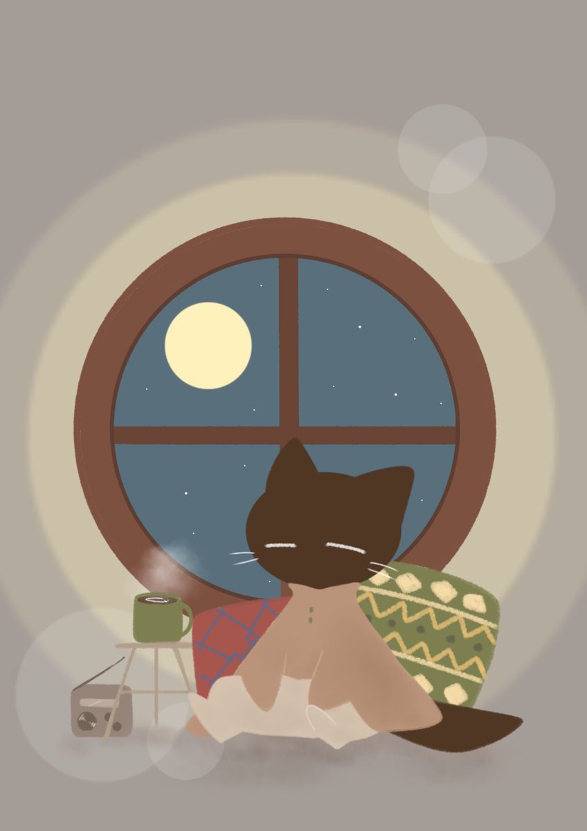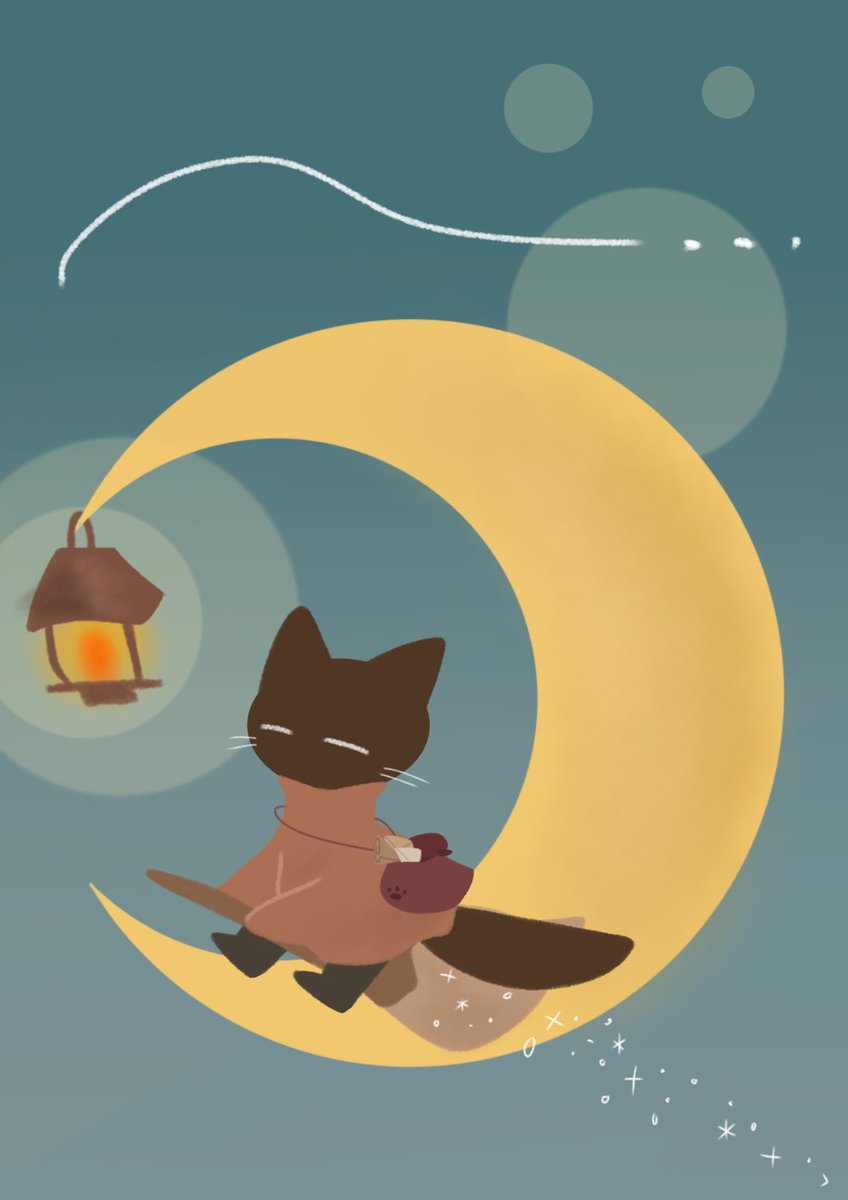 きみとぼくとの夜は離れているけど #猫 #イラスト