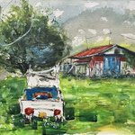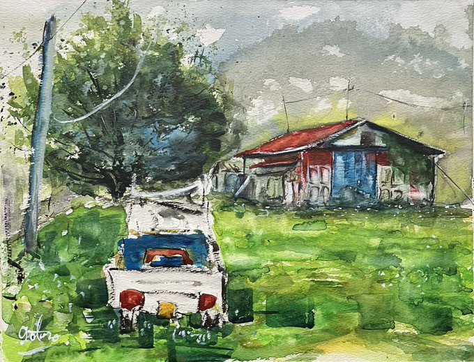 1 3 群馬県の赤城山にあるカッコいい色の納屋と軽トラック #絵 #水彩画 23/07/05 10:10