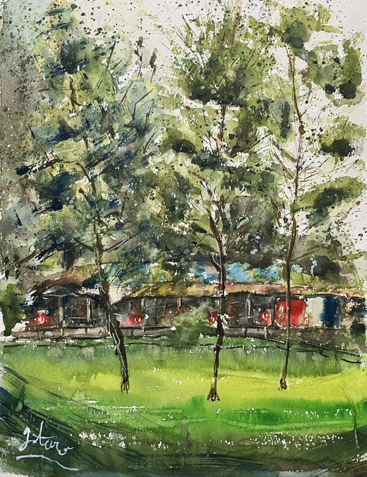 2 4 群馬県の高台のとこにある畑と光と梅の木 #絵 #水彩画 23/06/14 15:22