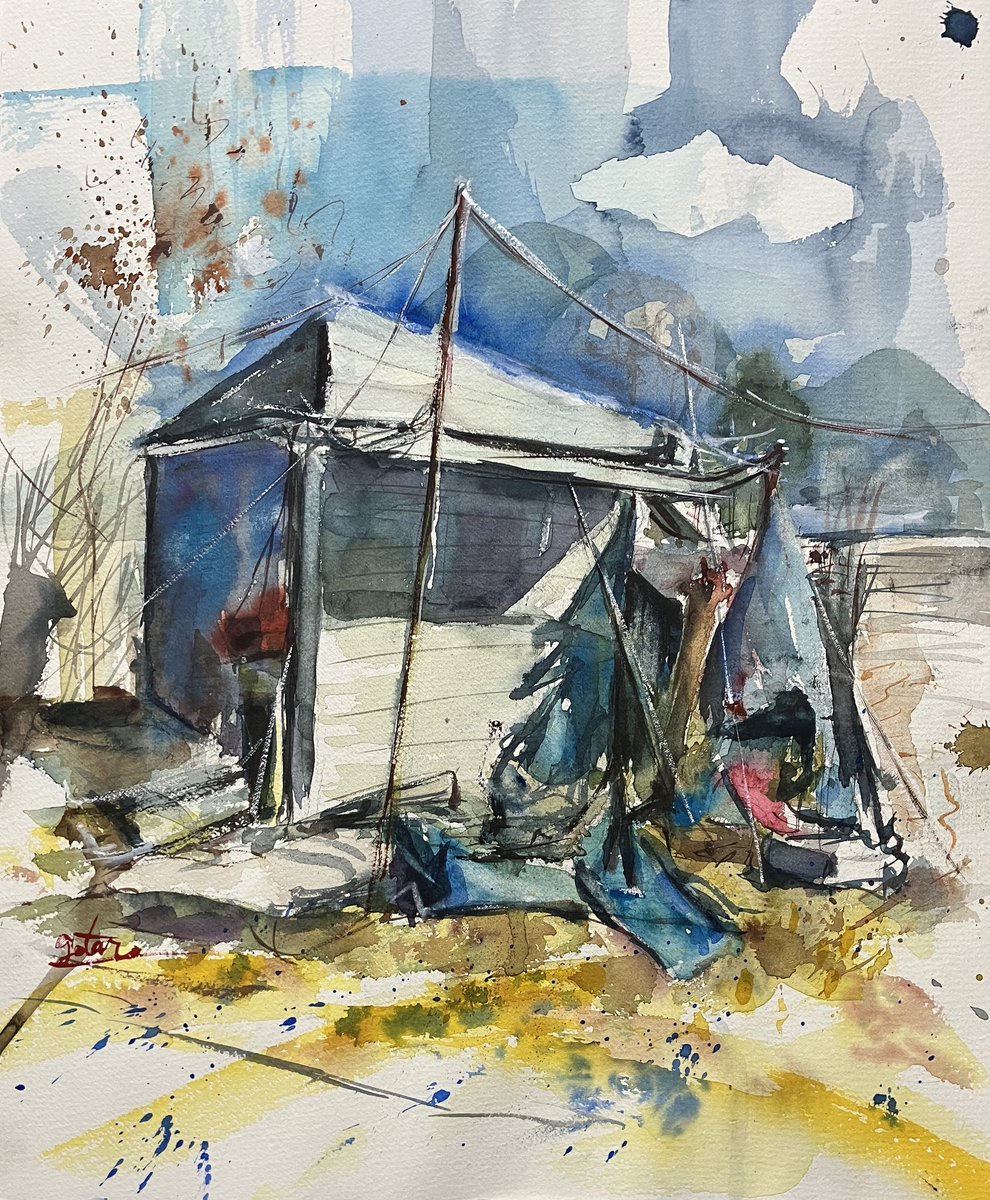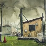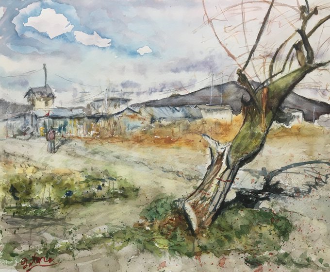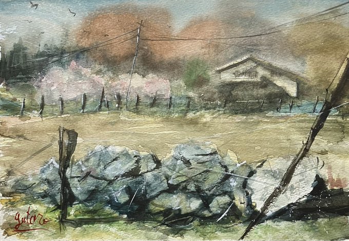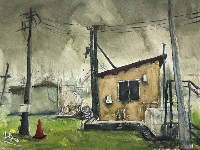 0 1 群馬県の高台のところのドラム缶がある風景 #絵 #水彩画 23/05/24 17:16