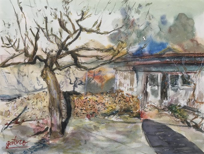 カッコいい庭の納屋とカッコいい木 #絵 #水彩画
