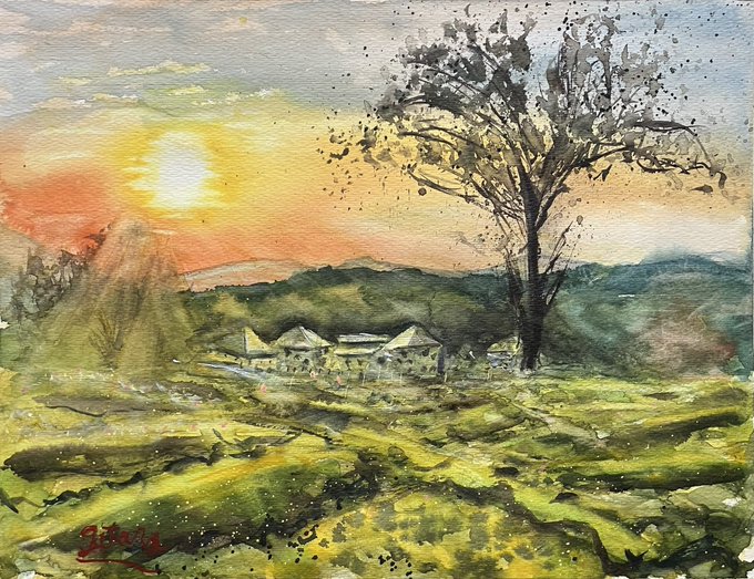 2 5 赤城山の夕暮れ時 #絵 #水彩画 23/06/07 07:19