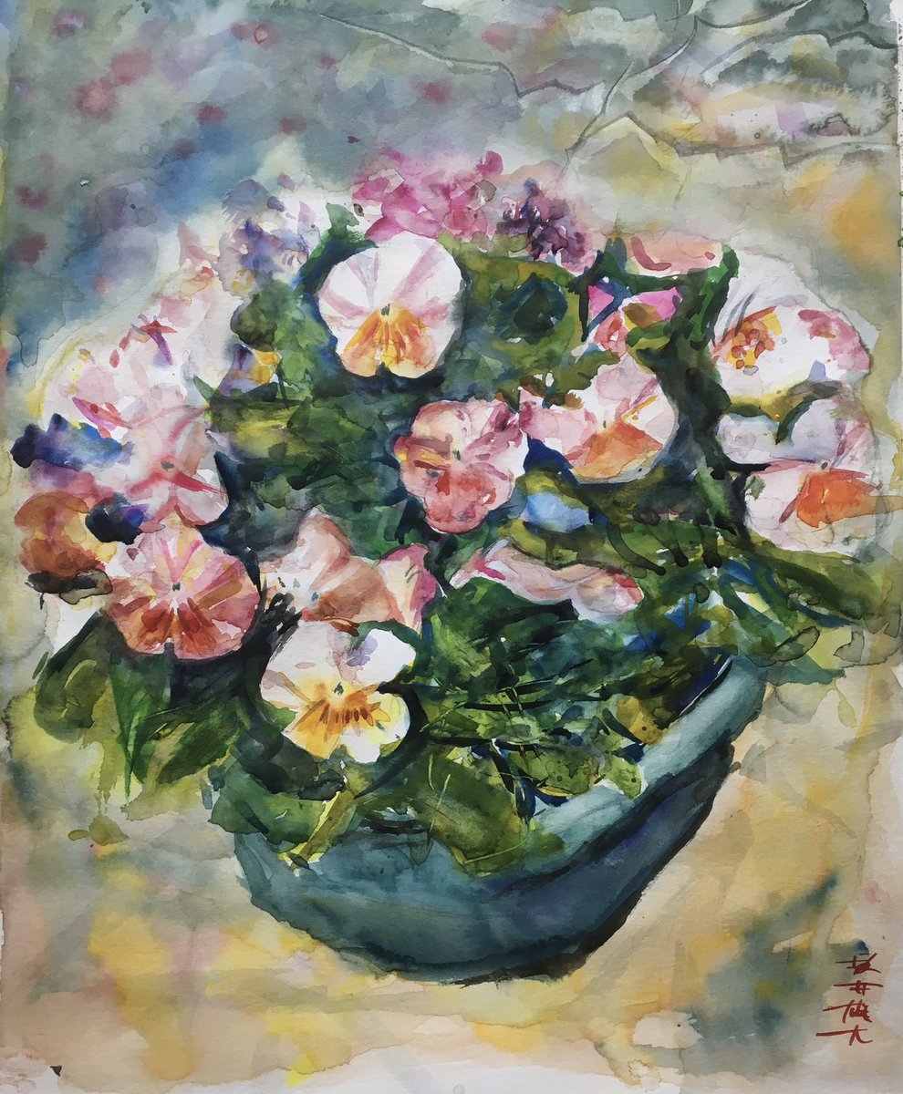 1 3 玄関先の植木鉢 #絵 #水彩画 23/05/31 12:10