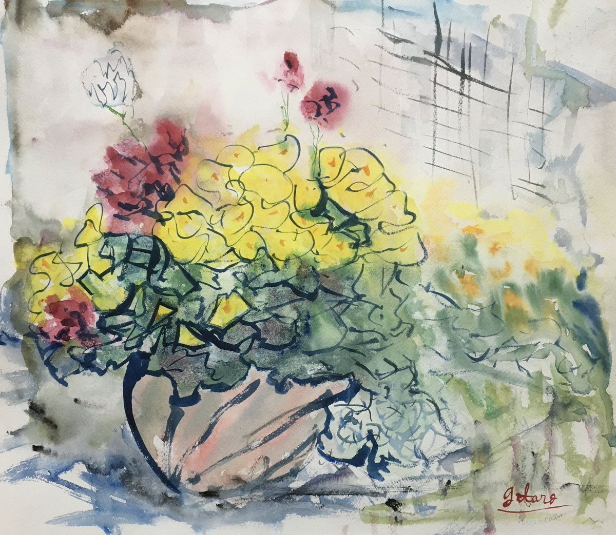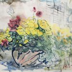1 1 塀に並んだ植木鉢たち #絵 #水彩画 23/05/31 12:08