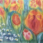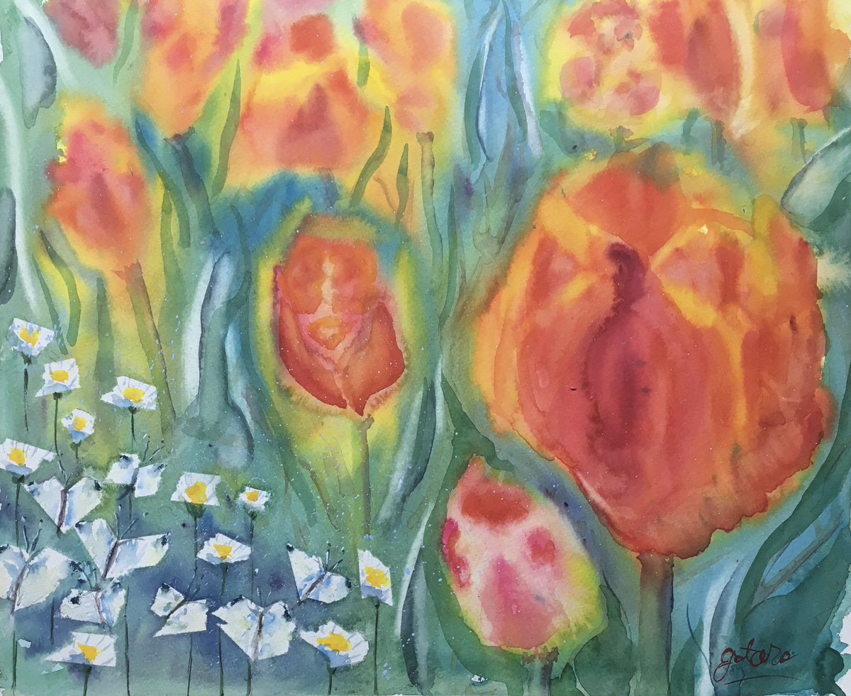 1 3 チューリップと白い花と蝶々 #絵 #水彩画 23/05/31 12:11