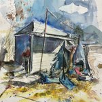 2 7 横田基地と曇り空 #絵 #水彩画 23/07/12 10:41
