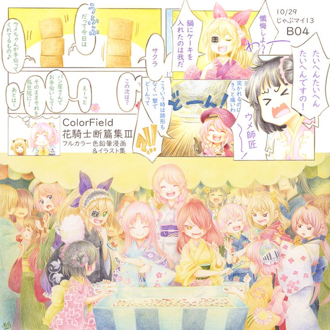 10/29のじゃぶマイ13はB04です。 花騎士断篇集Ⅲはtwitterに掲載したらくがき漫画に色鉛筆で着色したものを集めたものです。ちょっとだけ新作も入れています。よろしくお願いします。 #フラワーナイトガール #じゃぶマイ