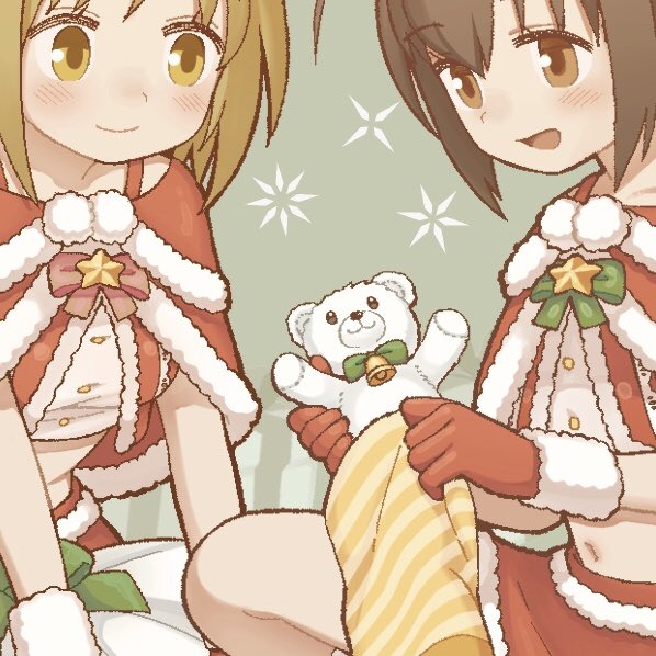 ずいけんさん@po_pp_u 主催のかなこちゃんカレンダーにイラスト寄稿させていただきました〜!かなみほサンタ…!シンステ8、スペースぬ-36で頒布されます🦀 #cin_stage #かな子とカレンダー