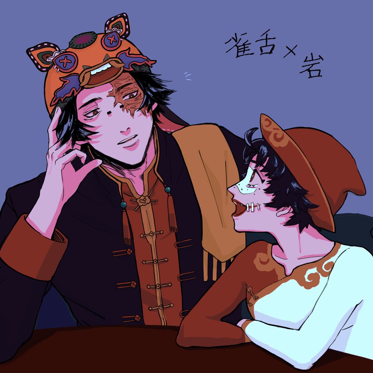 ①エアスケブ「雀舌×岩」探曲 遅くなってすみません…! 仕事中の雀舌の元によく遊びに来る岩ちゃん🐒気付いたら居る。 リクエストありがとうございました!