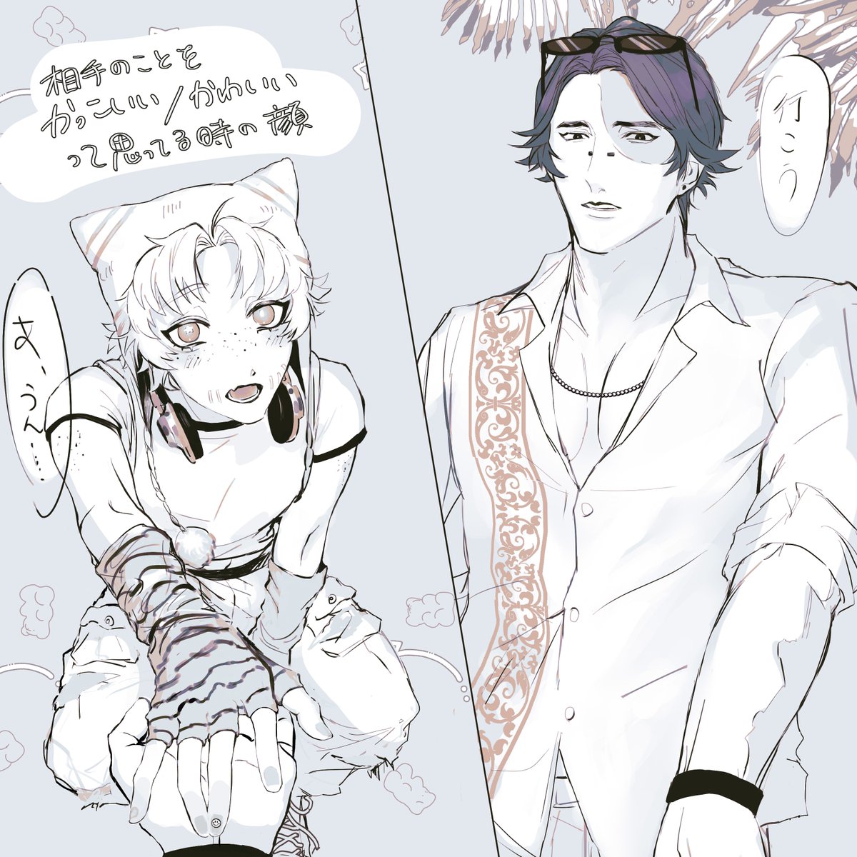19 106 ①エアスケブ「雀舌×岩」探曲 遅くなってすみません…! 仕事中の雀舌の元によく遊びに来る岩ちゃん🐒気付いたら居る。 リクエストありがとうございました! 21/04/11 20:59