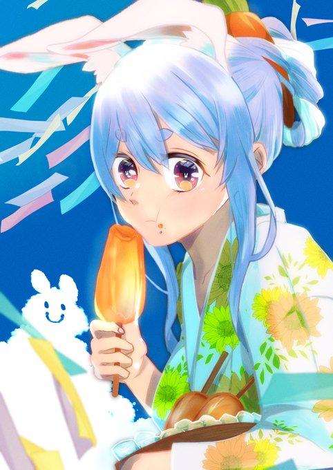 6 26 冷やし人参始めました🥕 暑中お見舞い申し上げますぺこ🧡💙 #ぺこらーと 22/07/29 14:06