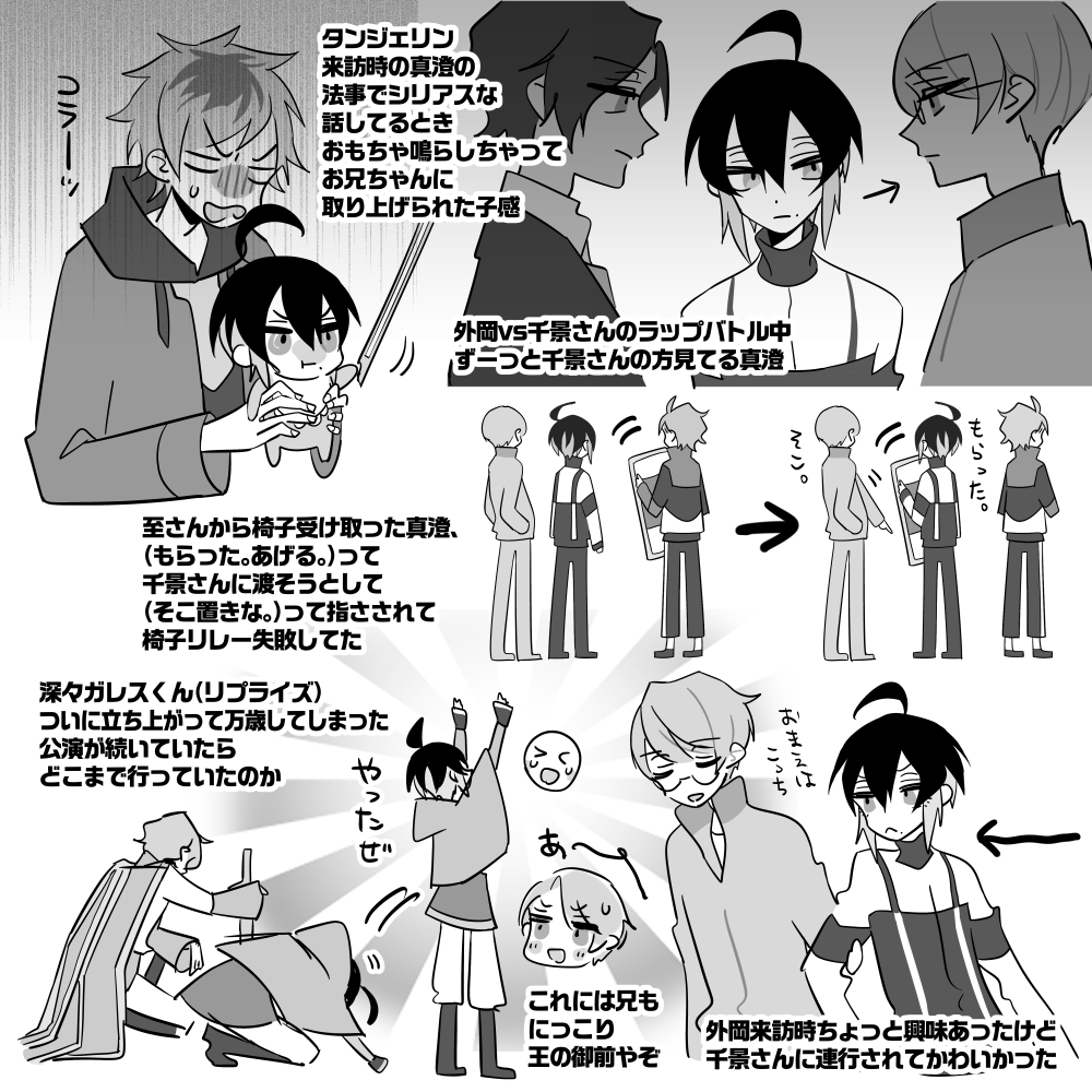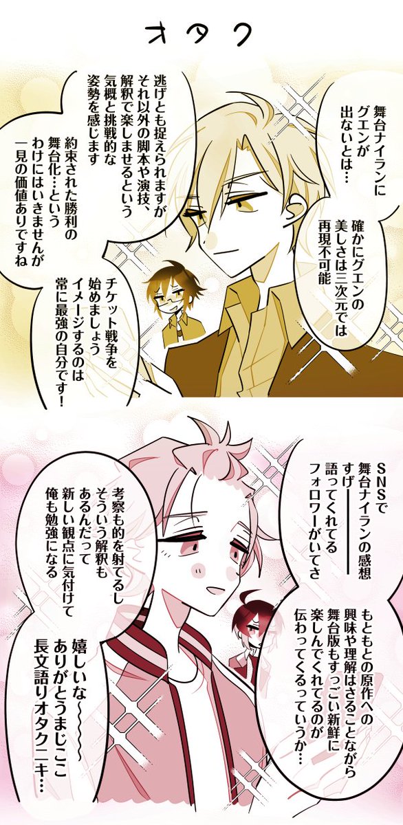 no_TL宛に箱のおへんじさせていただきました〜! (絵は特に関係ないらくがきです) 至さんが幕の前でお話してくれるところ、つい別のアニメのエンディングが流れそうになる