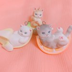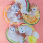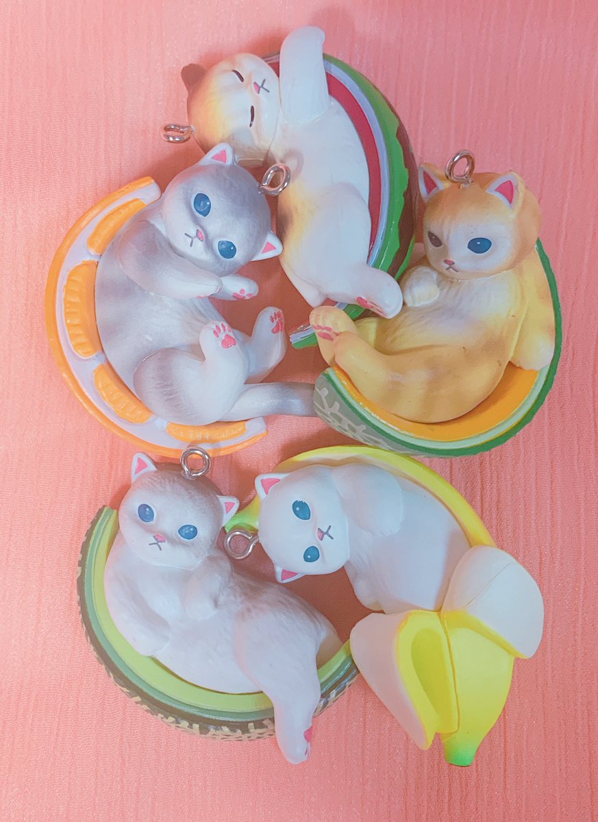 ぢゅのさん(@mofu_sand )の果物ねこガチャ揃った〜☺️💕 どの子も可愛い…ぽってりおなかやお尻…愛おしい💕🐈🐈🐈🐈🐈 #果物ねこ