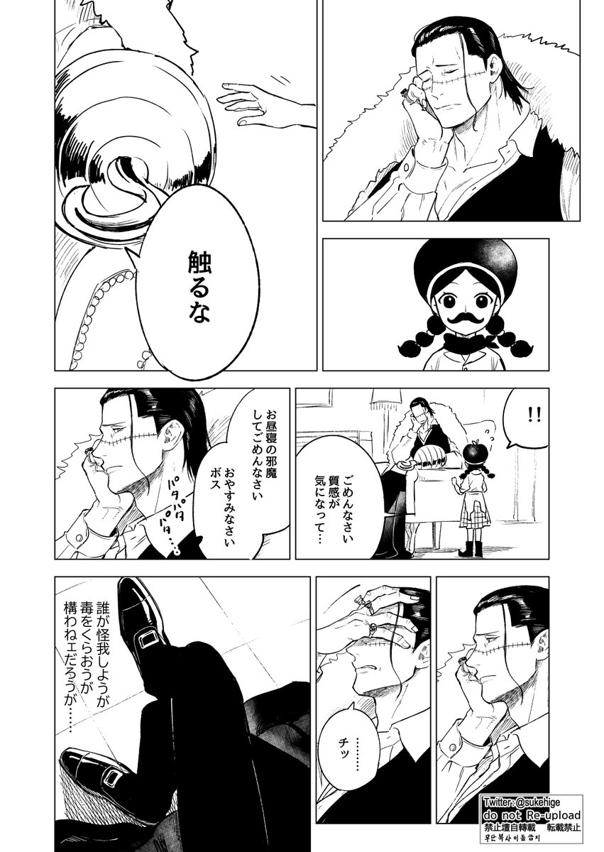 今週号見て思い出して再掲だが。 前に幼子兵器がオリジナルの記憶的なのを引き継いでたらなネタ描いたけど、今週号の内容見るに幼子兵器鰐も本体の海軍嫌いを引き継いでそうなきがしてならない。いつか反抗するのでは。初登場時の微妙な表情もそういう感情あったりするんだろうか。