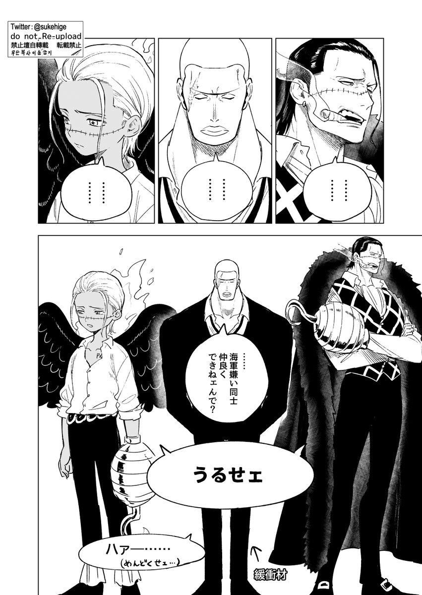 54 485 今週号見て思い出して再掲だが。 前に幼子兵器がオリジナルの記憶的なのを引き継いでたらなネタ描いたけど、今週号の内容見るに幼子兵器鰐も本体の海軍嫌いを引き継いでそうなきがしてならない。いつか反抗するのでは。初登場時の微妙な表情もそういう感情あったりするんだろうか。 23/08/21 11:00
