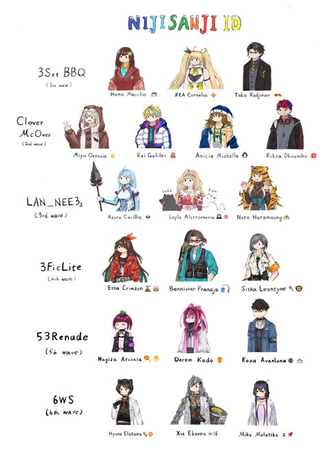 いつものやつです。縦に大分長くなりました。 Here is the new NIJI ID family picture including wave 6. It has gotten quite longer vertically. I hope you guys like it. #Elatiorart #Xiart_Wangy #Melatikaart #NIJISANJI_ID #NIJIArt