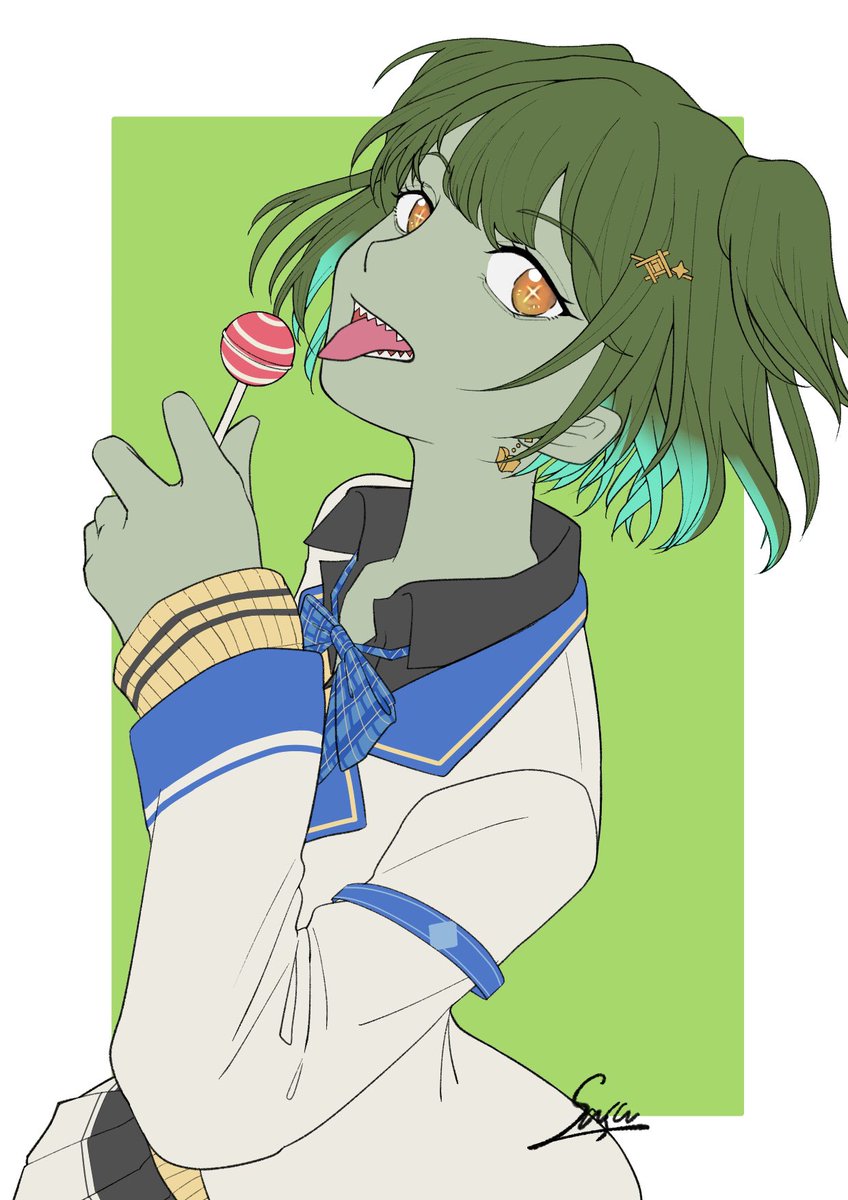 数日前ハッピーハロウィンでした。 某大人気Vtuberさんコスプレのヒスイ転生さんを描きました!よく似合ってますね!!!!!!!!!!!!!! #50人イラフト