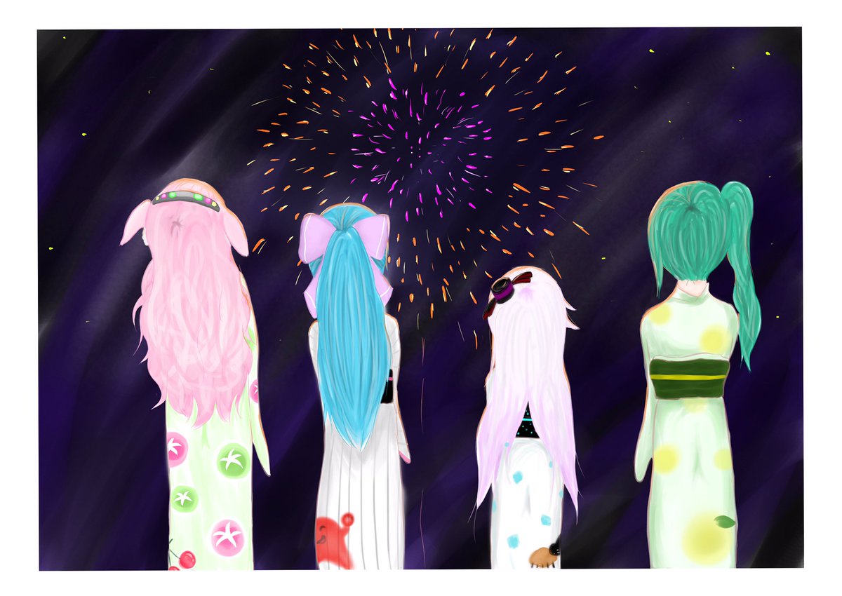 夢中になって描いてたら、めっちゃ夜更かししてた!! しま島花火大会、エモすぎてまじでよかった……。めめめが懐に持ってたサクランボは浴衣に反映したよ。 #めめアート #すずあーと #ピノの自由帳 #イオリの森美術館 #あつまれ_しま島花火大会
