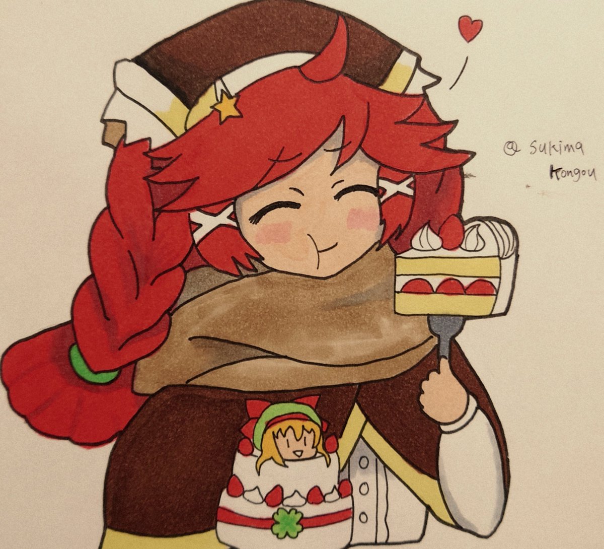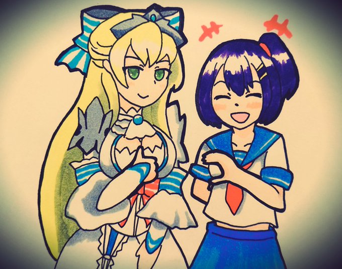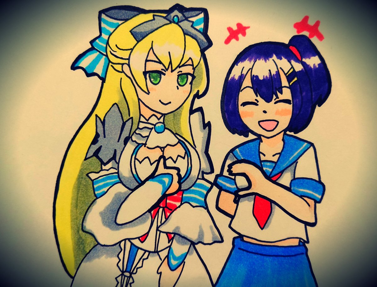 お姉様と記念撮影するシュネ #wlwイラスト
