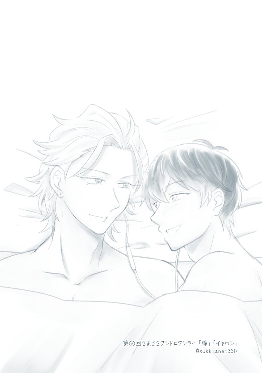 14 46 #さまささワンドロワンライ 【@smss1drwr】 50回目の開催おめでとうございます!🎊 「瞳」「イヤホン」 ⚠事後 ⚠開眼 21/01/09 23:45