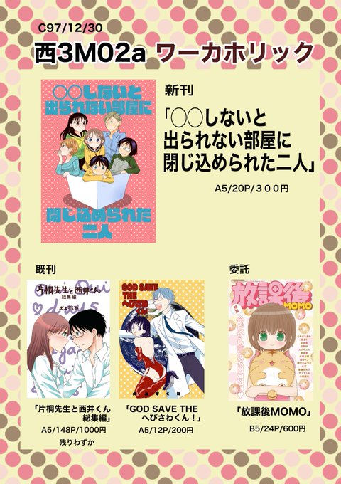 以前同人で出した「片桐先生と西井くん 総集編」を6月17日より電子書籍にて配信する事にしました(ナンバーナインさん経由)各サイトにて予約が始まっております→こちらはKindleのページ amazon.co.jp/dp/B0B3HQ7X3M/… @amazonJP 内容は同人誌版と同じなので紙版をお持ちでない方よろしくお願いします!