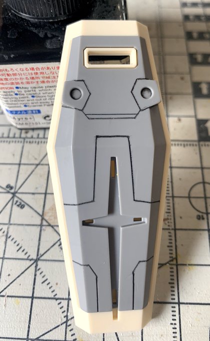 HG 1/144 スターゲイザー、肩アーマーにスジボリを彫り彫り。 月曜日にはスジボリを終え、サフ吹きまで進めたいと思ってますが、間に合うのかどうか! #ガンダム #ガンダムSEED #ガンプラ #ガンプラの画像を貼るとRTされると聞いて #ガンプラ好きと繋がりたい