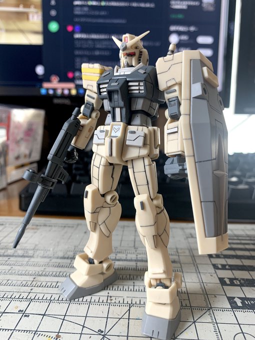 エントリーグレード 1/144 RX-78-2 クラシックカラー(🥚卵殻プラ)、完成しました。 温かい色味の成型色を活かし、ランナープラバンとスジボリでディテールアップし、部分塗装とつや消しで仕上げました。 #ガンプラ #ガンプラの画像を貼るとRTされると聞いて #ガンプラ好きと繋がりたい