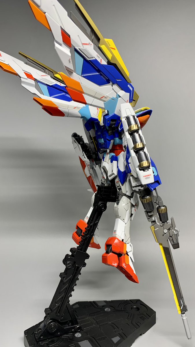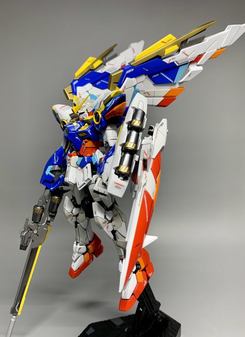 1/144 RG ウイングガンダムEW、完成しました🙌🏻 ウイングガンダムらしさを大切にしつつ、カラフル&ヒロイックになればいいなと思いながらディテールアップや塗装を行ないました😉 #ガンダム #ガンダムW #ガンプラ #ガンプラの画像を貼るとRTされると聞いて #ガンプラ好きと繋がりたい