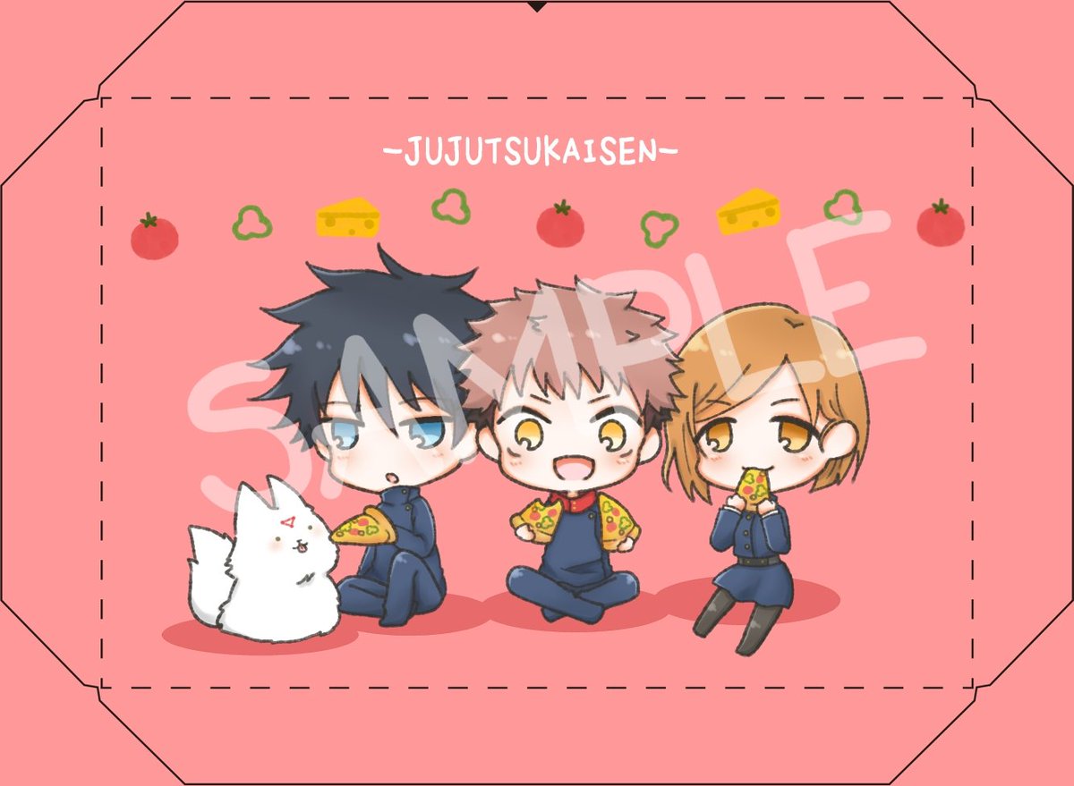 3 12 缶バッジが無事入稿出来たよー! 呪術でピザとおにぎり描きました!🍕🍙 四角い缶バッジになる予定…楽しみだぜ…☺️💓 21/07/12 22:47