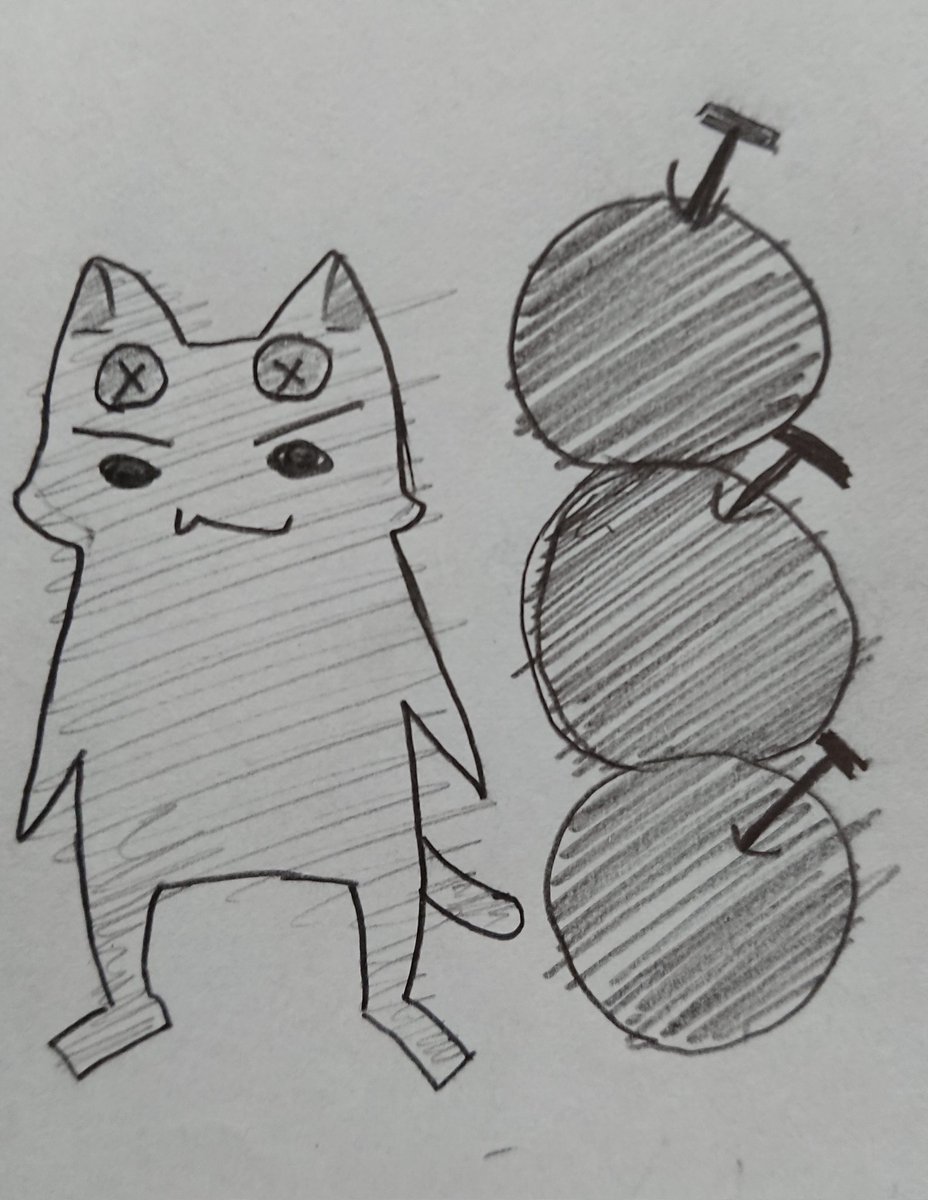 ハベネコの身長は、某キ◯ィちやんと同じ林檎3つなんで林檎栽培中のマスターさんたちへエールを込めて…の落書き。
