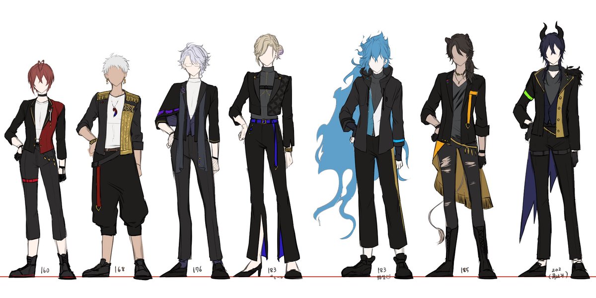 一応全身で考えていた衣装案です。 原曲の黒を基調とした衣装をベースに、それぞれの個性を出しつつ 統一感も失わないようにデザインさせていただきました! #クイステ twitter.com/sumiRe_sr/stat…