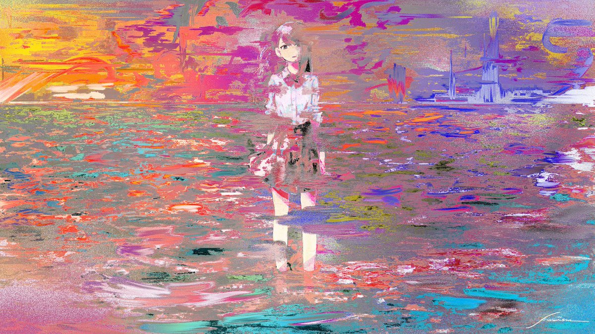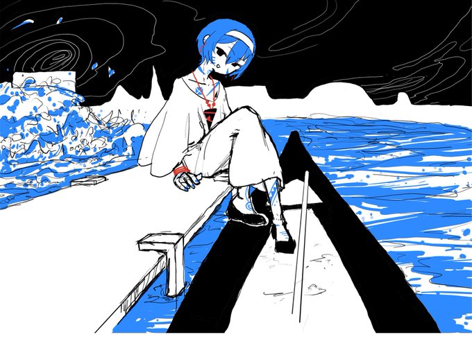 渺々たる虚数の海 / 可不 youtu.be/KS1osW6owSw 曲:どじゃべにーな(@Dojave_Nina ) 絵:Sumiism 揺れ動く自我と波間にのまれこまれる身体が、音楽の絶妙なリズムに合うように描きました。砂絵のような不安定感を出したかった。