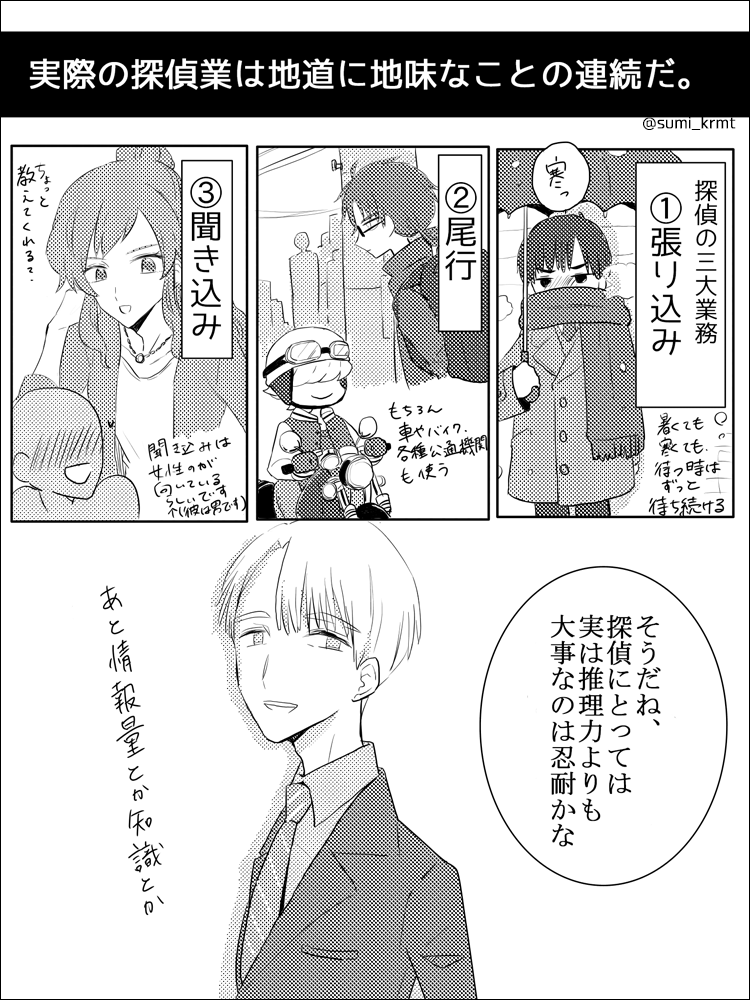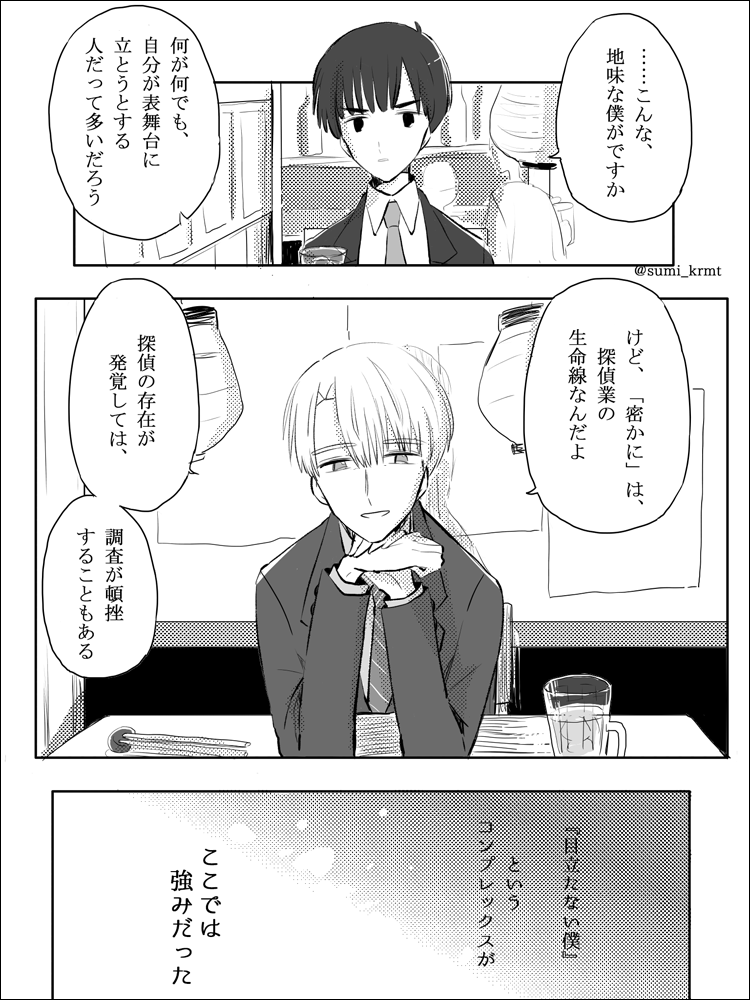 「探偵の副業」 灰山くんのエピの補足小ネタです #一次創作 #創作漫画 #漫画が読めるハッシュタグ #創作の狼煙 #GIN探偵事務所 twitter.com/sumi_krmt/stat…