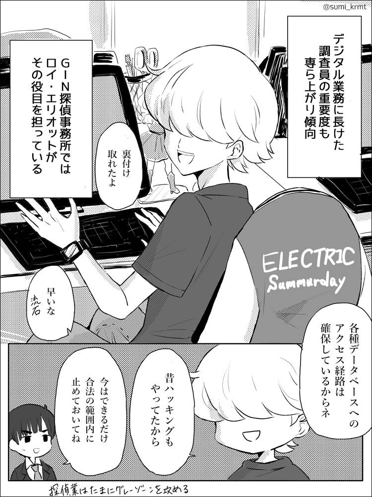 5 12 「探偵の副業」 灰山くんのエピの補足小ネタです #一次創作 #創作漫画 #漫画が読めるハッシュタグ #創作の狼煙 #GIN探偵事務所 twitter.com/sumi_krmt/stat… 22/08/23 19:35
