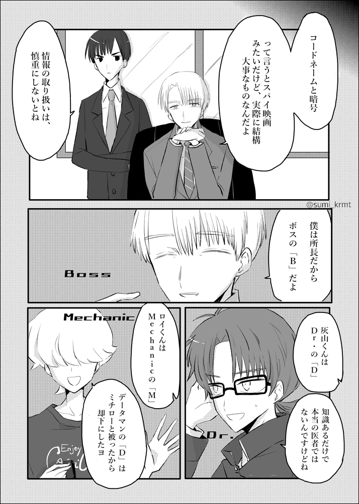 4 10 「B,S,D,M,C」 コードネームの話です。時間軸は球斗加入時のエピ #漫画が読めるハッシュタグ #創作の狼煙 #GIN探偵事務所 22/09/24 17:30