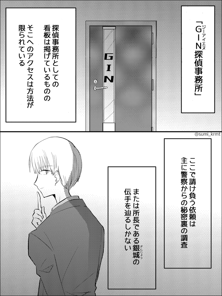 自作の探偵たちの軽めのさわり部分漫画を描きました。 私も地道に色々と描きたいです。 #一次創作 #創作漫画 #漫画が読めるハッシュタグ #GIN探偵事務所