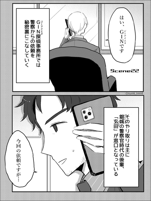 2 1 「警察と探偵」 警察サイドの人たちから見た、探偵についてのお話です #漫画が読めるハッシュタグ #創作漫画 #GIN探偵事務所 22/11/05 20:00